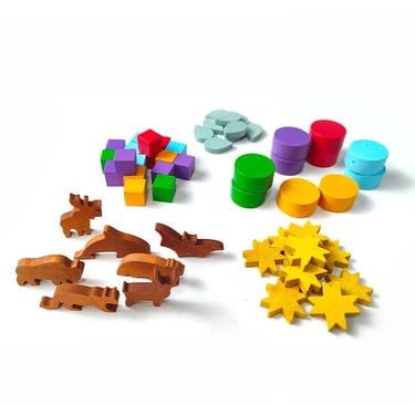 They are typically made from wood and are designed to be durable, tactile, and visually appealing. Some common examples of wooden game pieces include pawns, dice, cubes, discs, and meeples.