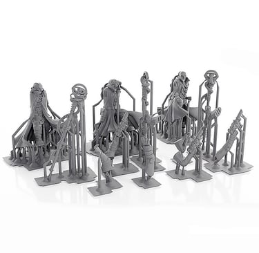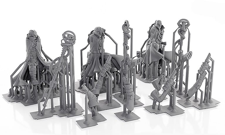 To customize a more complex miniature, we need to split your artwork to reflect its details; Then, make a separate mold for each part; Finally, assemble them together with glue.