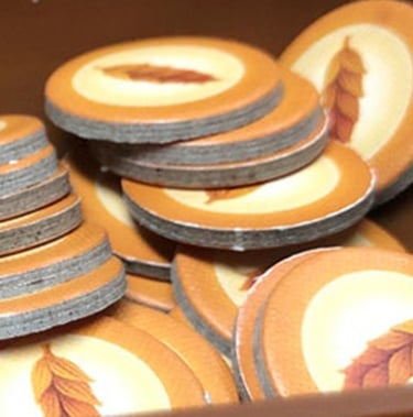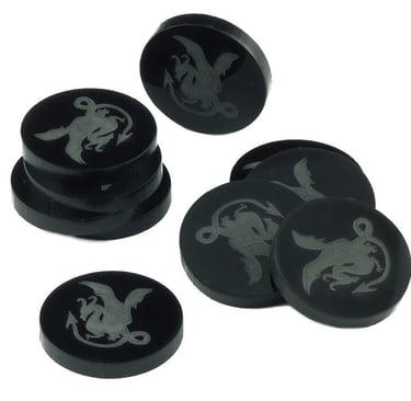 Often used as an alternative to cardboard or metal tokens. They are lighter and cheaper than metal tokens, and more durable than cardboard tokens.